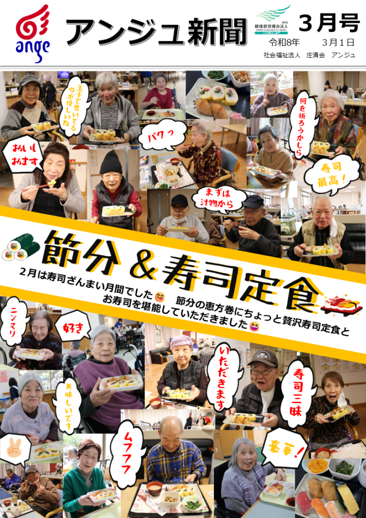 令和8年3月1日 アンジュ新聞(3月号)を更新しました。
